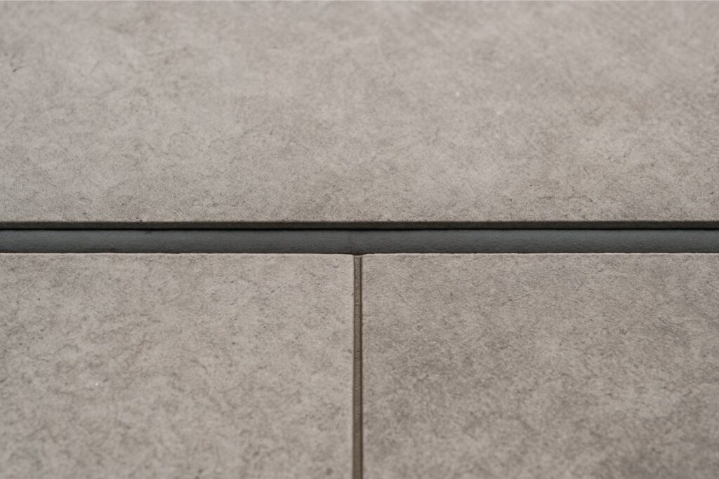 Intermediate joints. They divide the tile covering into smaller pieces – usually rectangular or square – so that each tile fragment can react to thermal and humidity changes with less effort. In installations without radiant heating, they are usually spaced every 8-10 m linearly, with depth also down to the separating layer. In floors with underfloor heating, this subdivision is adjusted to grids of about 25 m² (or every 5 m linear) to accommodate the temperature and movement of the heating system.
