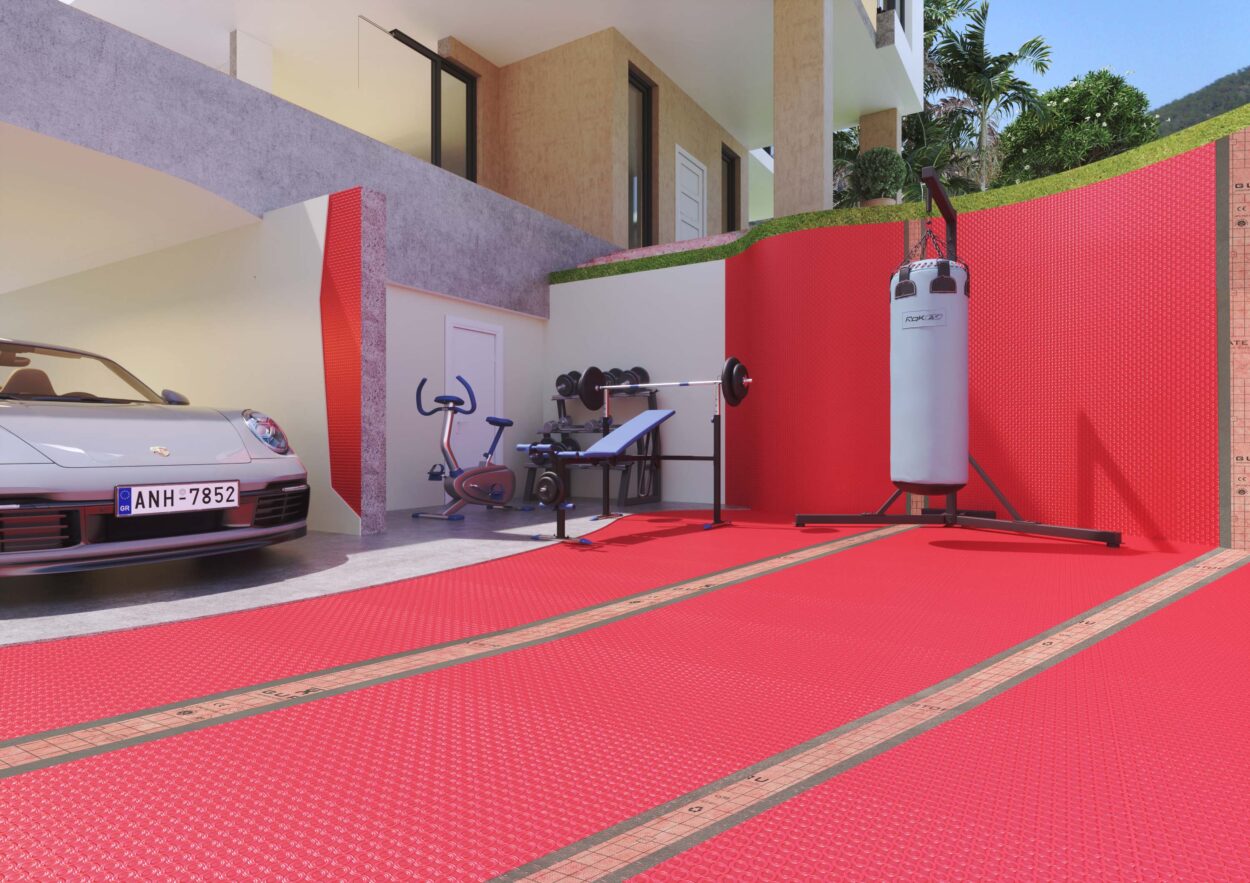 As instalações com G-Flex também podem ser feitas para impermeabilização. Dado que a folha de polietileno HDPE é totalmente impermeável, as juntas entre as folhas devem ser seladas e entregues entre o chão e a parede com a banda W-S BAND WATER-STOP colada com cimento polimérico impermeável.